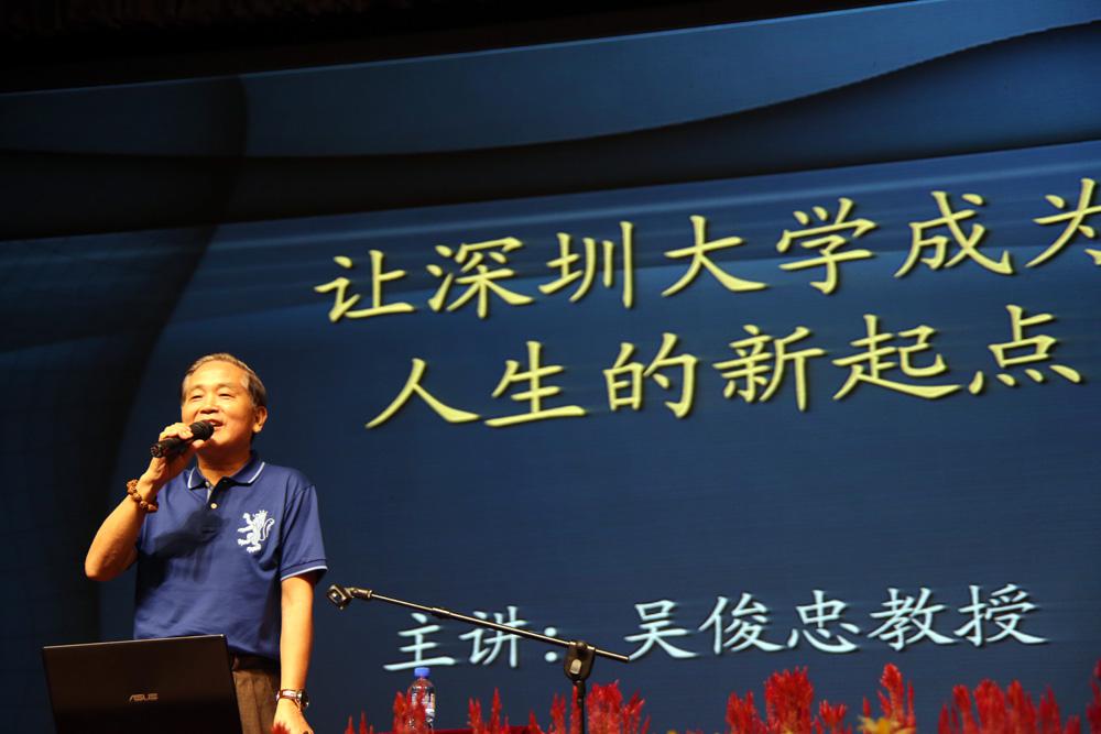 吴教授今天讲座的题目是《让深圳大学成为人生的新起点》,一共讲了10个方面的内容。他开宗明义地指出:大学阶段决定人生的走向。他以自己的经历和数十年大学教师的经验,说明大学阶段是一个青年从求知走向思辨,从感性走向理性的重要人生阶段;通过大学4年的学习,要发现新的自我,确立新的人生目标。接着,他针对传播学院大部分新生来自全国各地,简明扼要地介绍了深圳市从一个文化沙漠迅速成为现在中国的窗口,成为体现中国文化发展趋向的先锋城市的情况。他向同学们介绍,深圳城市文化竞争力为全国大中城市排名第一,被联合国教科文组织授予“设计之都”、“全球全民阅读典范城市”的荣誉称号;被世界知名组织授予“杰出的发展中知识城市”荣誉称号,已经进入“中国文化的第一方阵”。他希望同学们熟悉深圳环境,感受深圳文化。他指出,感受深圳文化必须做到“四个要”:要尽快融入深圳文化,要有现代观念意识,要有创新意识和创新精神,要有开放意识和国际视野。