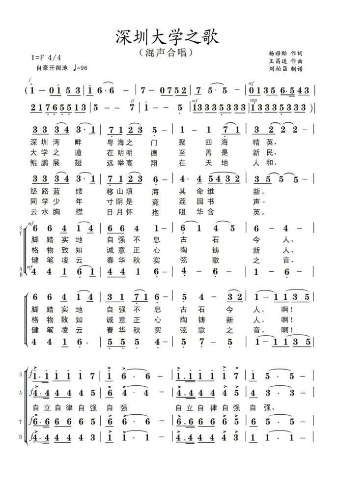 在李凤亮等教授意见的基础上,经修改的《深圳大学之歌》如下: