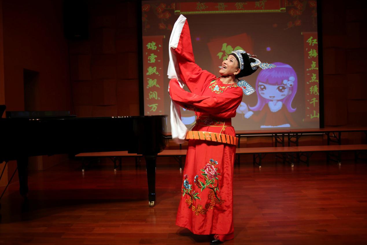 2015年新春歌舞会有合唱、独唱、重唱、独舞、京剧清唱、黄梅戏、钢琴独奏等多种形式一共22个节目。大合唱《大漠之夜》辽阔幽远,《鼓浪屿之波》深情柔美,都是较高难度的合唱歌曲,但艺术团演唱得很成功。83岁的杨湧昌老师一曲《叫我如何不想她》声遏行云;73岁的李梦梅老师身穿大红袍,一段黄梅戏《女驸马》摇曳多姿;70多岁的黄顺珍老师的钢琴独奏《童年的回忆》行云流水;70多岁的李龙月老师京剧清唱《霸王别姬》韵味十足;他们的演出都赢得满堂喝彩。同样是70多岁的陈佩芗医生、朱国琴老师、陶练老师的独唱,还有唐铁羽、徐复迪、周世珍、王广丽、刘惠珠、杨移贻等老师也都表演了独唱。刘柏昌、李雪花等老师则提倡“原创歌曲”,他们的小组演唱了由刘老师作词、李老师作曲的《难忘三十年》;还有男女声四重唱、女生三重唱、男女声二重唱等,同样精彩。而李沛然老师的蒙古族舞蹈《情归草原》,其刚柔相济的身段和热烈多情的舞姿,技惊四座;石晓鹰、丛建萍老师的舞蹈《小苹果》热烈欢快,把大家都带回如花的青少年时代。汇演以女生小组唱《美丽的村庄》和《送别》压轴,在一片欢欣鼓舞中结束。大家祝愿艺术团越办越好,祝愿老教师老同志们青春不老,健康幸福!
