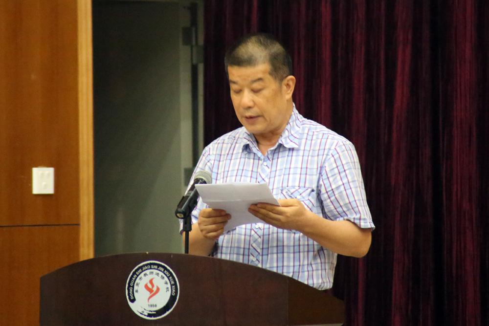 广州外语外贸大学关工委主任冯益谦作大会发言。