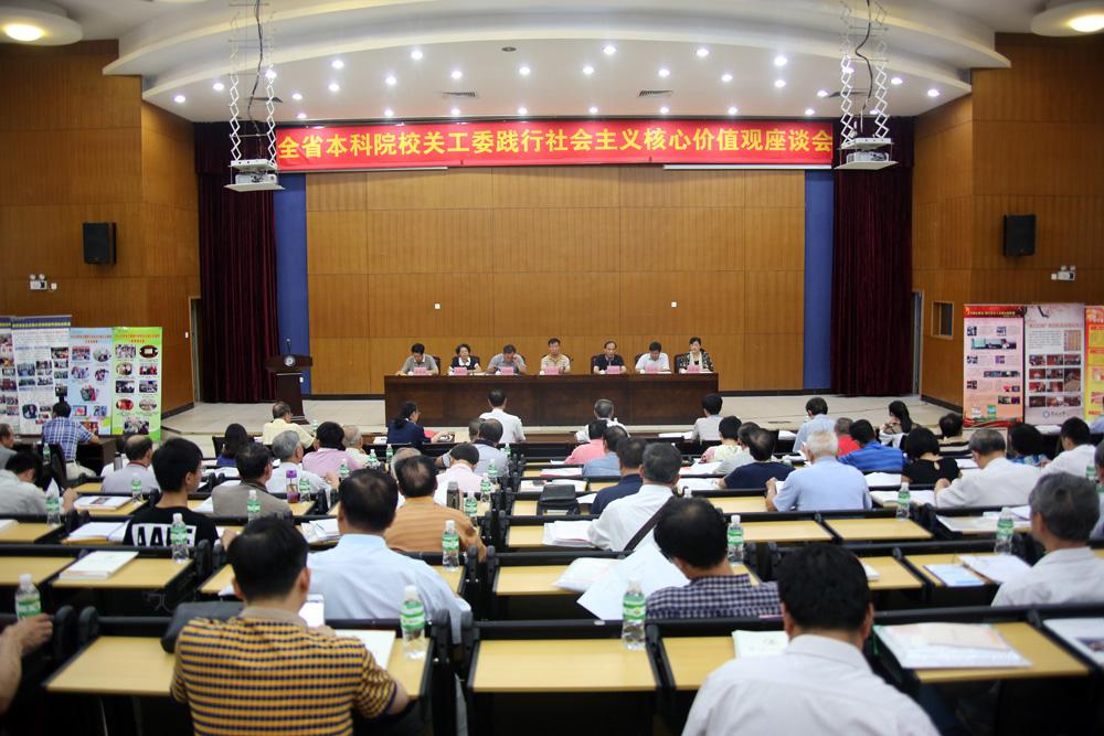 省教育关工委王玉学主任做了总结发言。他指出:我省高校关工委在培育与践行社会主义核心价值观的工作中成绩斐然,各校的工作各有亮点。社会主义核心价值观的提出具有深刻的历史背景和重大的现实意义。党的十八大提出的“富强、民主、文明、和谐,倡导自由、平等、公正、法治,倡导爱国、敬业、诚信、友善”24字的社会主义核心价值观,是社会主义核心价值体系的内核,体现社会主义核心价值体系的根本性质和基本特征,反映社会主义核心价值体系的丰富内涵和实践要求,是社会主义核心价值体系的高度凝练和集中表达。习近平总书记多次作出重要论述、提出明确要求,号召全党全国人民积极培育和践行社会主义核心价值观。价值观、人生观对青年人一生具有重要而深远的意义。大学是培养人才的地方,大学培养目标的要义就是培养和践行社会主义核心价值观。关工委要把此作为义不容辞的历史责任,要把培育与践行社会主义核心价值观摆在重要位置上,作为中心工作来谋划,作为常态来工作,作为主线来贯穿;要抓住实践养成、榜样引领、文化熏陶、情感关爱和偏差纠正五个环节,全面深入推进培育与践行社会主义核心价值观的工作。他还勉励关工委老同志要加强学习意识、协同意识、典型意识和贴近意识,把工作做得好上加好。