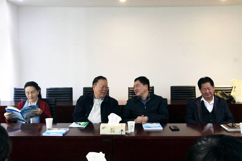深大党委副书记范志刚(左3)、关工委主任王宋荣(左2)、关工委副主任梁桂麟(右1)和关工委副主任李梦梅(左1)在会议上。