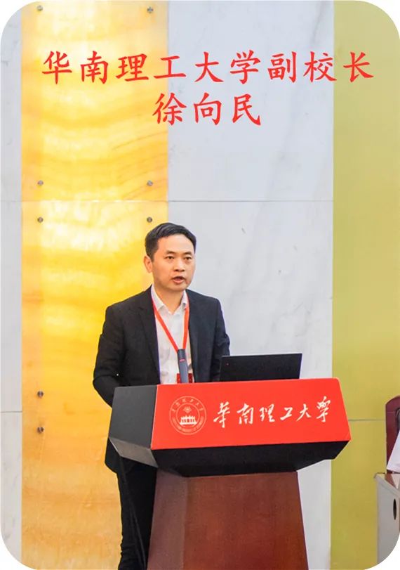 接着华南理工大学副校长徐向民致词。他向与会代表简介了华南理工大学的发展情况,感谢广东老教授协会对华工大创建世界一流大学的支持,表示一如既往支持老教授协会的工作。