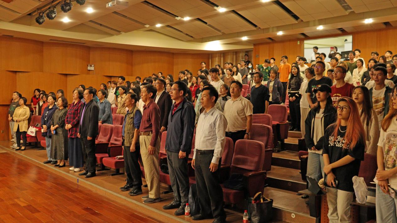 聆听这一场红色音乐讲座除了艺术学部和其他学院的百余位学生外,还有革命老区江西省吉安市政府驻深办事处主任刘亚东等一行、深大艺术学部副主任兼音乐舞蹈学院院长刘琨教授、深大音乐舞蹈学院音乐系系主任杨婷博士,以及深大关工委、离退休党委、秋韵艺术团、艺术学部等单位的老师们。
