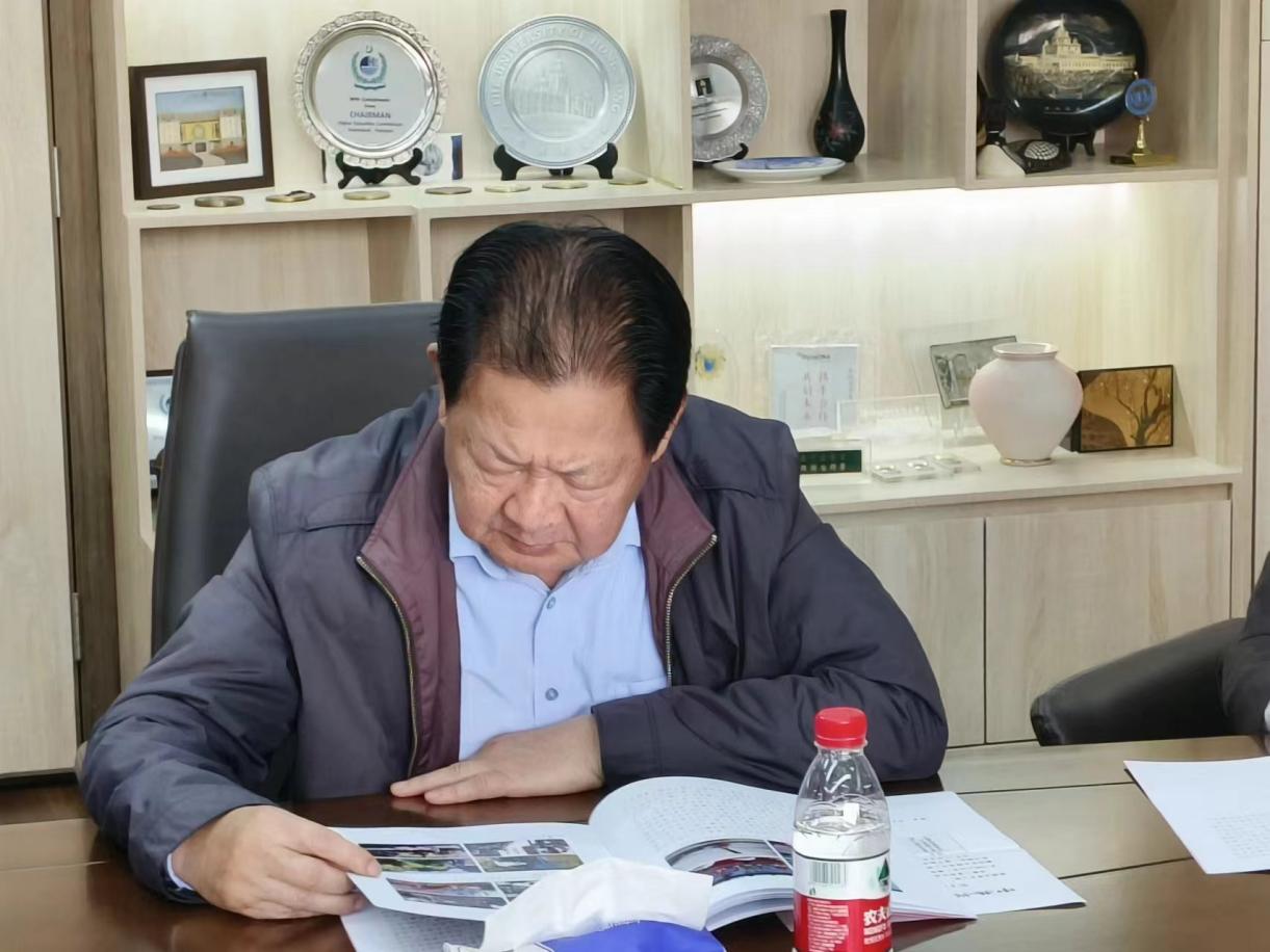 深大关工委梁桂麟副主任向客人介绍关心下一代工作情况。