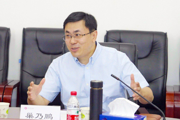 传播学院院长巢乃鹏介绍依托专业特长打造特色课程的情况。