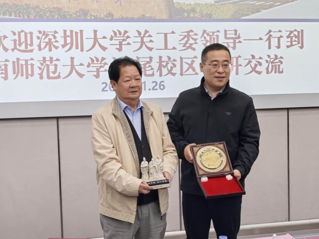 26日上午,学校关工委队伍来到华南师范大学汕尾校区(以下简称汕尾校区),受到汕尾校区党委副书记、管委会常务副主任徐向龙,党委副书记,行知书院副院长唐小煜,党委副书记、纪委书记,管委会副主任汪锡鑫等的热情接待。在该校区图书馆4楼,深大关工委委员们听取徐向龙副书记介绍汕尾校区的筹建、招生、学科设置、人才培养和校园建设的情况,然后到图书馆102会议室,双方进行交流。徐副书记说:华师汕尾校区与深圳大学有很深的缘分,深圳大学参与汕尾校区的筹办、建设,校园规划也是由深大建筑设计学院设计的,现在有一批深大的学术骨干在汕尾校区担任院长等职务,为校区的人才培养和学科发展做出很大贡献。