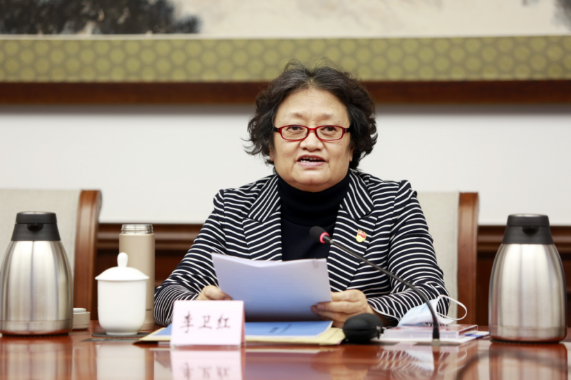 李卫红在讲话中充分肯定北京教育系统关工委工作,认为党政领导重视支持,关工委班子务实奋进,广大“五老”倾情奉献,工作呈现出“注重在大局中找准定位,主动作为突出;注重在传承中谋创新,品牌效应突出;注重在务实中促发展,引领作用突出”的特点,成效显著,是全国教育系统关工委的排头兵、领头雁。她指出,中办、国办印发《关于加强新时代关心下一代工作委员会工作的意见》(以下简称《意见》),为新时代关工委工作提供了科学指引和行动纲领。关于《意见》贯彻落实,她提出三点要求。一是深刻认识新时代关心下一代工作的重大意义。要进一步提高政治站位,深刻领会精神实质,把贯彻《意见》与把握新发展阶段、贯彻新发展理念、构建新发展格局结合起来,切实增强责任感、使命感,落实好这一重大而光荣的政治任务。二是准确把握新时代关心下一代工作的责任使命。要聚焦后继有人这个根本大计,坚守老教育人立德树人初心,牢记促进青少年健康成长使命,在坚持政治引领、助力思想政治教育、助力青少年全面发展、助力家校社协同共育、助力乡村振兴等方面持续发力。三是切实推动新时代关心下一代工作高质量发展。希望北京市委教育工委、市教委一如既往地重视和支持关心下一代工作,进一步加大对“老校长下乡”、“家校社共育咨询室”建设等工作的政策扶持和经费支持力度,进一步规范关工委成员单位联席会议制度,为老同志发挥作用多搭平台、多给保障。希望北京教育系统关工委为全国教育系统关心下一代工作高质量发展继续贡献北京智慧、北京力量,组织建设要聚焦本科院校二级学院关工委、职业院校关工委、民办高校关工委和中小学关工小组建设,在如何发挥作用上下功夫;队伍建设要聚焦“五老”接续机制建设,在如何从制度上实现人员顺利交替、事业有序衔接上下功夫;品牌建设要聚焦大中小学思政课一体化建设以及“双减”、劳动教育、心理健康教育等新要求,在如何发挥“五老”作用、提升品牌时代价值和有效性上下功夫。