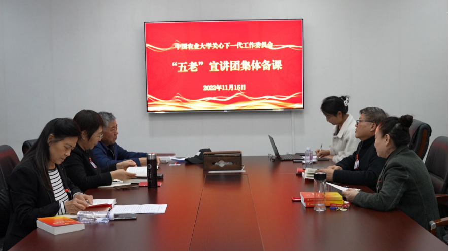 近日,中国农业大学关工委组织二十大精神“五老”宣讲团开展集体备课,交流研讨宣讲活动。宣讲团团长齐爱兰主持备课会,宣讲团全体成员参加备课。