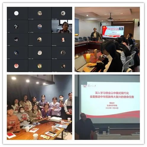 近日,复旦大学关工委分别组织学校关工委副主任、信息学院关工委分会副主任、信息学院原党委书记朱建艺,图书馆关工委分会副主任、特邀党建组织员钱京娅,社会发展与公共政策学院关工委分会副主任范伟达,生命科学学院关工委分会副主任、特邀党建组织员杨金水四位专家深入到青年学生中宣讲党的二十大精神。