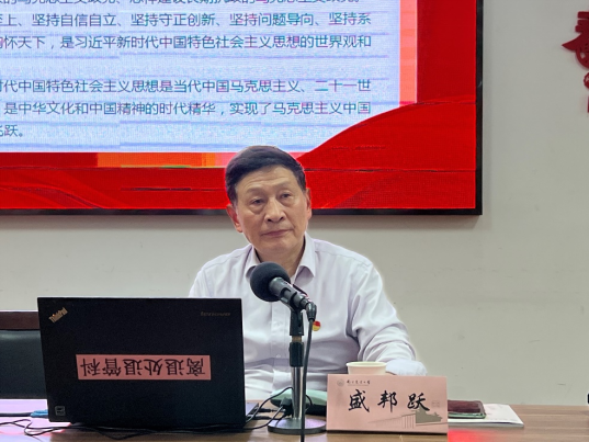 盛邦跃以《习近平新时代中国特色社会主义思想导读》为题,从习近平新时代中国特色社会主义思想是如何创立的、主要包含哪些内容、如何把握习近平新时代中国特色社会主义思想的世界观和方法论、如何理解习近平新时代中国特色社会主义思想的历史地位、如何学好用好习近平新时代中国特色社会主义思想六个方面对习近平新时代中国特色社会主义思想进行了深入阐释。他指出,习近平新时代中国特色社会主义思想回答的重大时代课题是新时代坚持和发展什么样的中国特色社会主义、怎样坚持和发展中国特色社会主义,建设什么样的社会主义现代化强国、怎样建设社会主义现代化强国,建设什么样的长期执政的马克思主义政党、怎样建设长期执政的马克思主义政党。