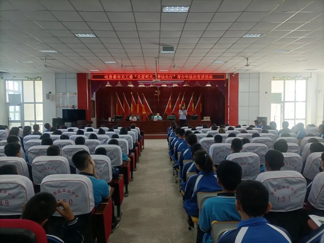 近日,吐鲁番市关工委“红石榴·再朝晖”宣讲团赴高昌区乡镇开展了“关爱明天、普法先行”青少年法治宣讲活动,吐鲁番市关工委常务副主任兼秘书长西克然木·吾甫尔主持宣讲活动。