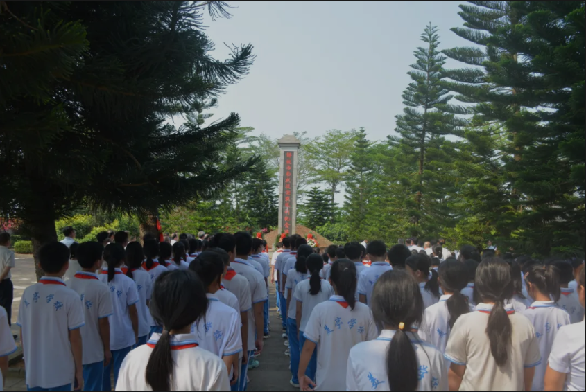 活动开始,全体“五老”、师生在“解放海南战役决战胜利”纪念碑前整齐列队,齐唱中华人民共和国国歌,向革命烈士敬献花篮,鞠躬默哀。随后缓步绕行一周,瞻仰革命烈士纪念碑,向先烈们致以最崇高的敬意。