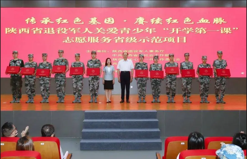根据陕西退役军人“红星闪闪耀三秦”系列志愿服务工作整体安排,每年开学季,全省退役军人事务系统都要组织优秀退役军人志愿者深入各大中小学校,组织开展升旗仪式、国防教育、红色宣讲、军事训练等关爱青少年“开学第一课”,帮助青少年加强政治淬炼、汲取精神营养,系好人生“第一粒纽扣”。