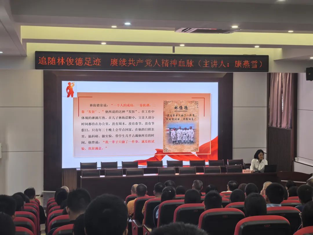 泉州市关工委报告团报告员、泉州市委党校党史党建教研室副主任康燕雪副教授为东周中学师生们作《追寻林俊德足迹,赓续共产党人精神血脉》主题宣讲。她用生动的语言,讲述了我国爆炸力学与核试验工程领域著名专家林俊德扎根边疆52年,把青春和生命融入大漠戈壁,把全部心血和智慧奉献给国防事业,为国防和军队现代化建设做出卓越贡献的感人故事。林俊德院士为国家奉献一生,甚至是在生命垂危之际仍一心扑在工作上的无私奉献、顽强拼搏精神深深打动了在场每一位人员。康副教授勉励学生,要学习林俊德院士的爱国情怀和高尚人格,树立远大理想,勤奋学习,积极进取,争当新时代好少年。宣讲结束后,同学们情绪高涨,纷纷表示要向英模人物学习,努力学习科学文化知识,大力弘扬爱国奉献精神,积极服务社会,为中华民族伟大复兴贡献力量。