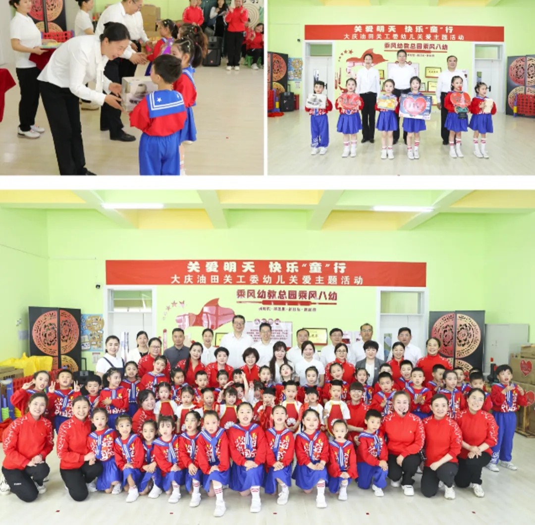 在“六一”儿童节即将来临之际,5月28日,中国石油大庆油田关工委开展了“关爱明天 快乐‘童’行”幼儿关爱主题活动,为铁人学院乘风八幼的“小油娃”和幼教职工送去问候与温暖。油田党委副书记、工会主席、关工委主任崔颖凯,油田关工委副主任于洪波,以及有关领导参加了活动。
