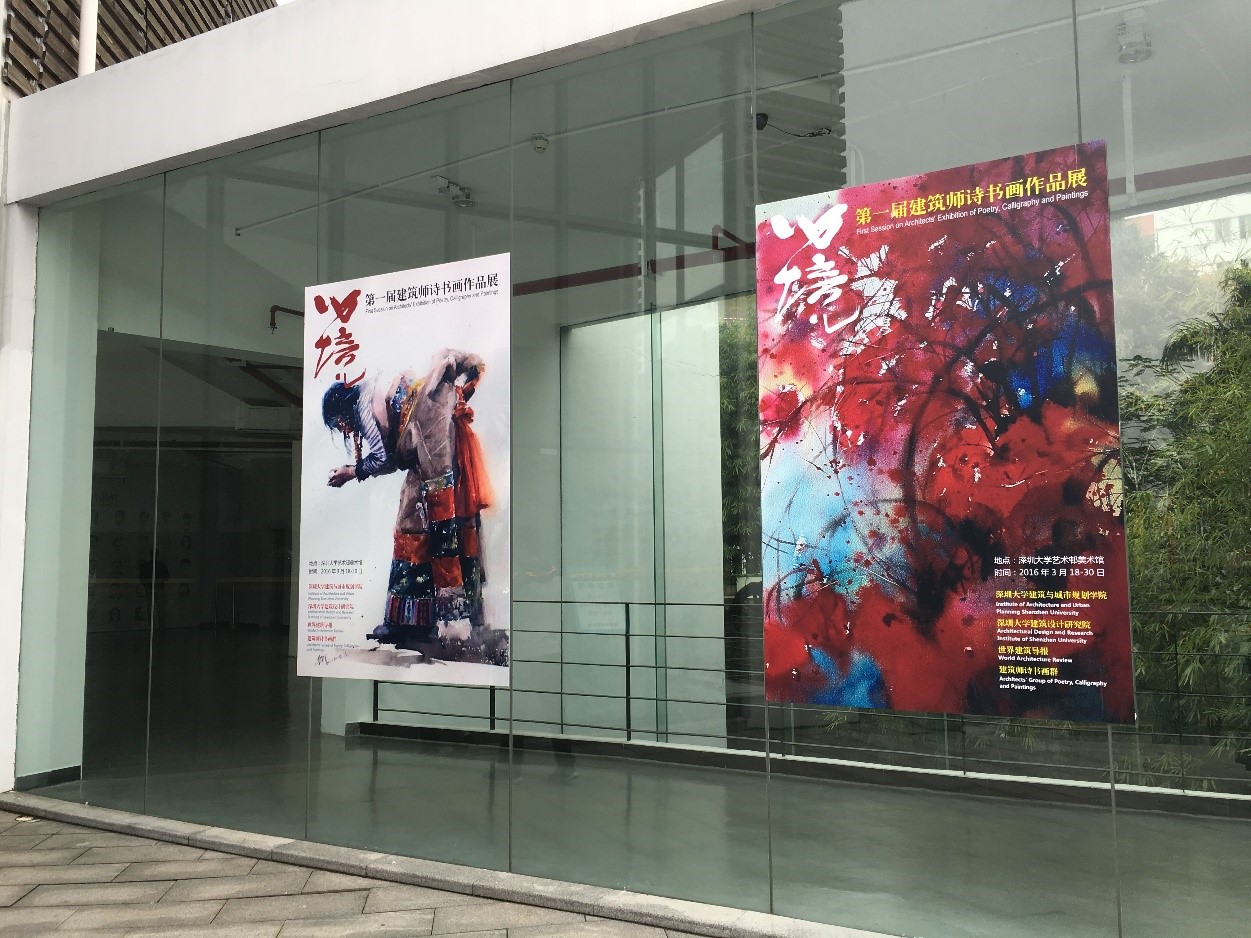 2016年3月18日(周五)下午14:00,由深圳大学建筑与城市规划学院、深圳大学建筑设计研究院、世界建筑导报、建筑师诗书画群联合举办的“第一届建筑师诗书画作品展—深大站”开幕式在深圳大学艺术邨美术馆举行。该展览为期12天,从3月18日开始,3月30日结束。展览汇聚了建筑界近40份优秀的书画作品,充分展示出当代建筑师特有的精神风貌与艺术修养。