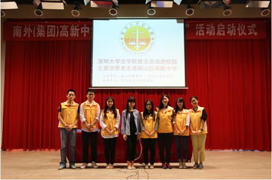 自十八大以来,以习近平同志为核心的党中央领导集体不断强调法治工作的重要性,十八届四中全会更是明确提出了“建设中国特色社会主义法治国家”的宏伟目标。为响应党中央的号召,进一步加强深圳市教育系统法制宣传工作,增强师生及市民的法治意识和法制观,2015年10月12日,由深圳市南山区教育局和深圳大学法学院主办、深圳大学法学院团委承办的以“普法使者进校园”为主题的深圳大学志愿者普法活动走进了深圳市高新中学、麒麟中学等五所学校,开始了愉快轻松而又充满意义的普法活动。