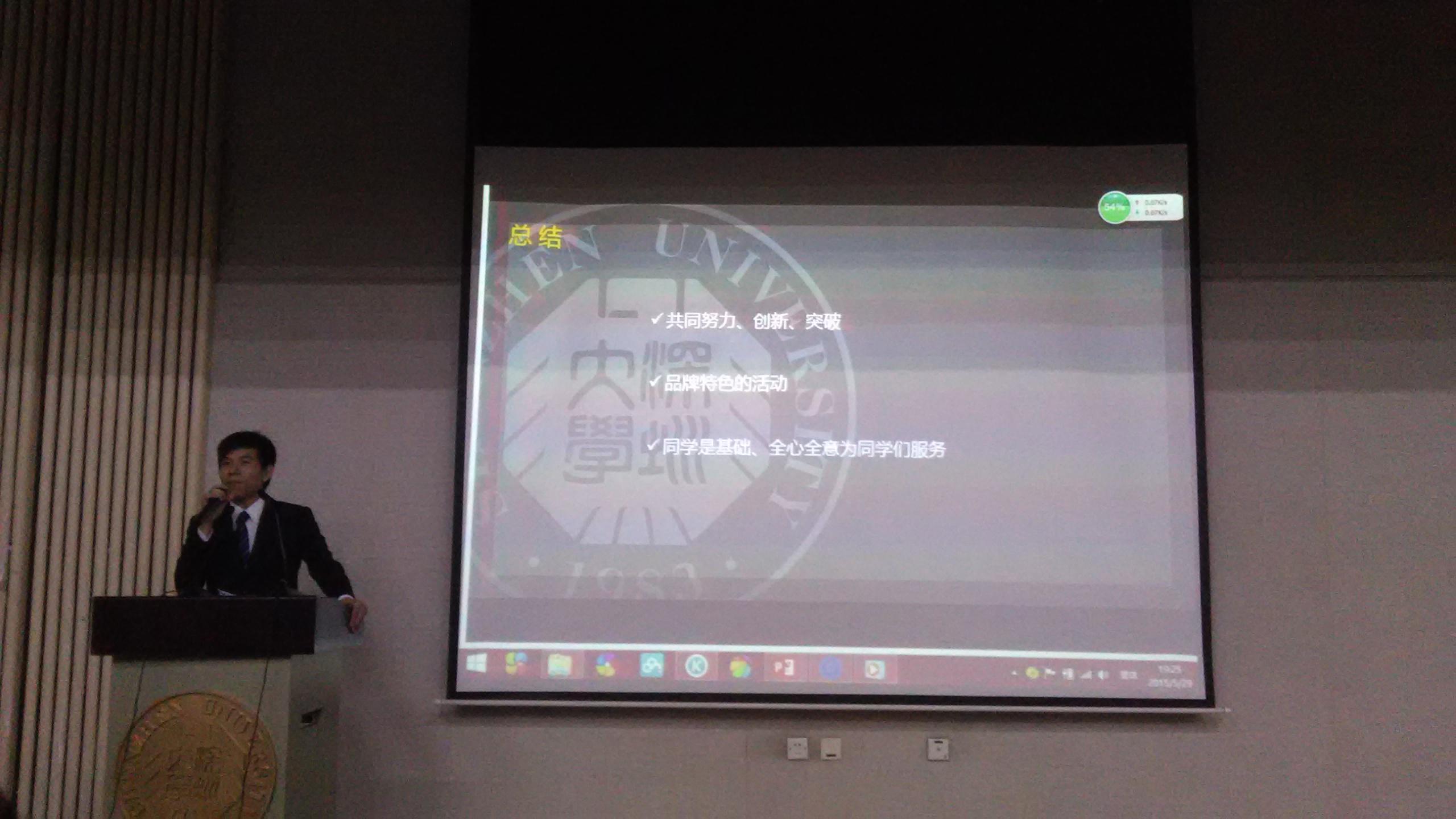第九届学生会主席陈上海进行工作总结