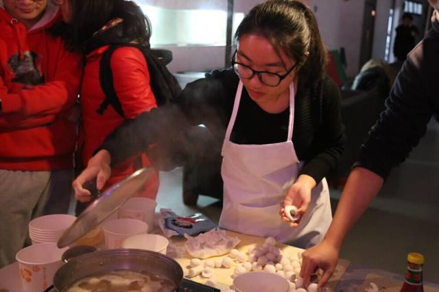 双旦晚会不仅仅是一场视听盛宴,当天晚上,义工部的同学们现场制作并免费派送热乎乎的汤圆,让在场的师生们感受到了寒冬里的温暖。
