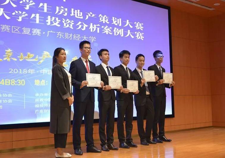 比赛伊始,由广东财经大学邹新月副校长对莅临本次大赛的专家教授、特邀嘉宾及评委们表示感谢,并对各参赛队伍的老师和同学表示热烈欢迎。随后进入参赛队伍展现作品环节——参赛队伍分别展示作品成果12分钟并且展示结束后进行五分钟的答辩,最后由评委们对参赛团队进行评分。各参赛团队选手都绘声绘色地讲述着其团队代表作品,在展示作品的同时也给现场观众带来许多关于房地产的知识,使大家受益匪浅并令在场的评委赞不绝口。其中,深圳大学的“实干的梦想家”代表队,以“繁华之上,万科悦湖”为主题,向在场的观众介绍其项目作品,并且在答辩的过程中用铿锵有力的话语进行回答,得到了评委们的肯定。最后在评委们的评分下,深圳大学“实干的梦想家”代表队以第二名的成绩获得此次大赛一等奖并晋级第十届全国房地产策划大赛总决赛。