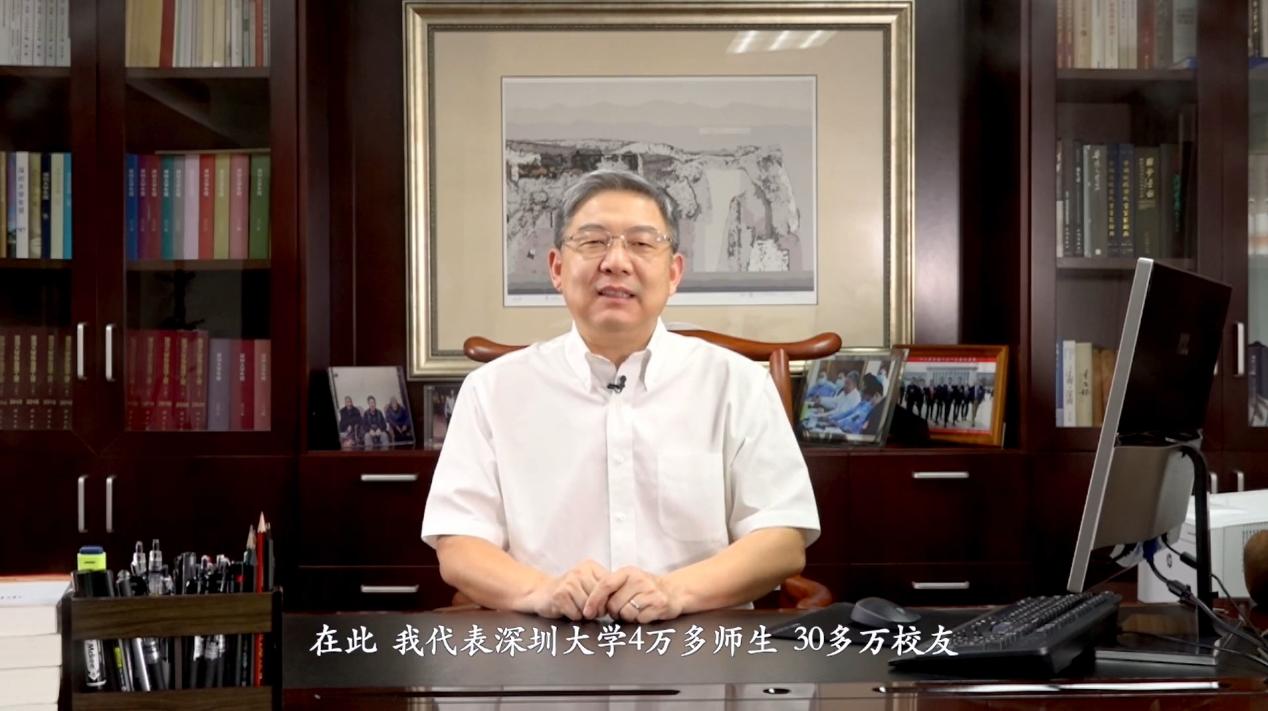 此次活动首先播放深圳大学2021年官方招生宣传片《X=∞》,宣传片以梦想为切入点,通过在挫折与失败中逆风起航、探索未知来充分展示深圳大学“自立、自律、自强”的校训,选择深大,不仅将会探索更多的可能,还可能化为现实。在激情澎湃的招生宣传片过后,由深圳大学44位国内外院士中的七位全职院士进行简短的致辞,这七位院士包括谢和平院士、范滇元院士、陈湘生院士、张学记院士、SOMEKH MICHAEL GEOFFREY院士、陈峰院士和王序进院士。