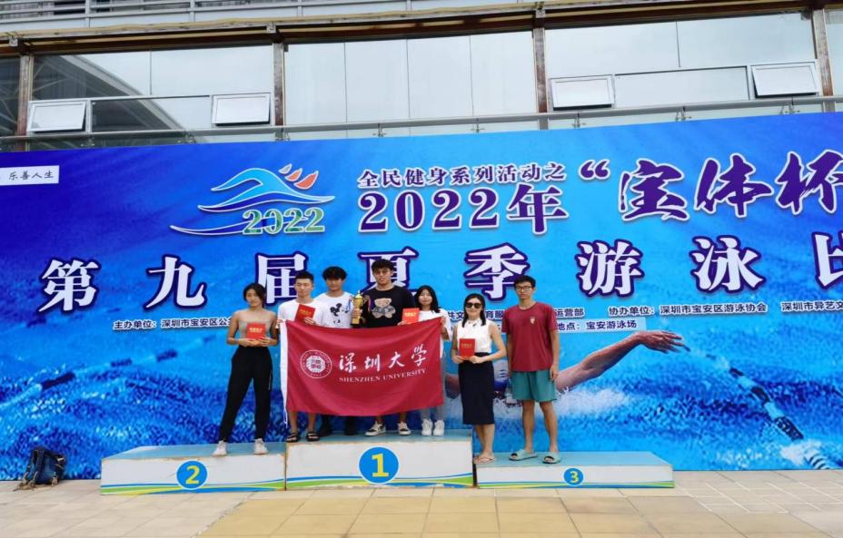 虽然在本次比赛前,深大队参赛队员们基本以运动员的个人训练为主,并没有经过系统的游泳训练,但在实力相对悬殊的情况下,深大队运动员奋勇拼搏,勇争第一。在经过激烈的奖牌争夺战之后,深大队的运动员最终夺得了本次比赛共39个项目中的9枚金牌。同时,深圳大学代表队在14个团队中获得团体综合总分第五的良好成绩。