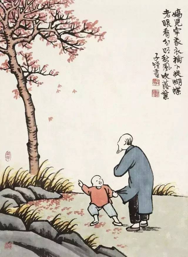 我的孩子们!憧憬于你们的生活的我,痴心要为你们永远挽留这黄金时代在这册子里。然这真不过象“蜘蛛网落花”,略微保留一点春的痕迹而已。且到你们懂得我这片心情的时候,你们早已不是这样的人,我的画在世间已无可印证了!这是何等可悲哀的事啊!