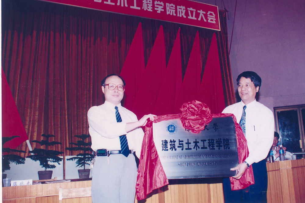 1990年代,学校扩大办学规模,加强学科建设,推行学院制。图为第一个学院建筑与土木工程学院成立大会。