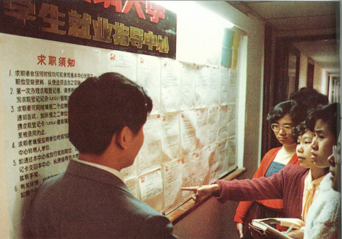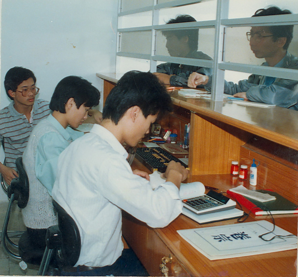 深圳大学率先实行学生收费上学,不包分配。图为学生在实验银行交费。