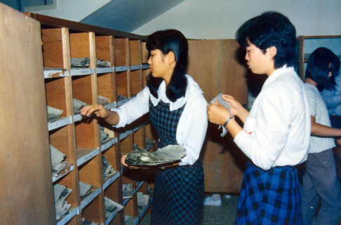 学生在电话总机房勤工俭学。