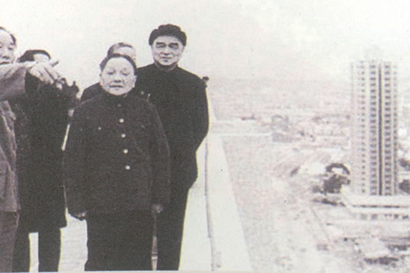在国务院的支持下,清华大学副校长、著名科学家、两院院士张维被聘为深圳大学创校校长。图为张维校长(中)在深圳湾勘察选定深圳大学校址。