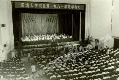 1983年9月27日,深圳市委、市政府在深圳戏院隆重召开深圳大学成立暨一九八三年开学典礼,创造了“当年筹办,当年招生、当年开学”的中国高等教育“深圳速度”。