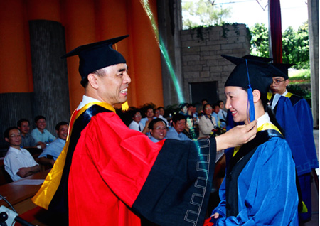 1996年,学校获得硕士学位授权,图为首届硕士毕业生授予博士学位仪式。
