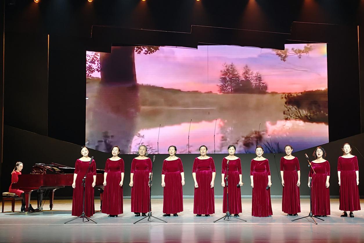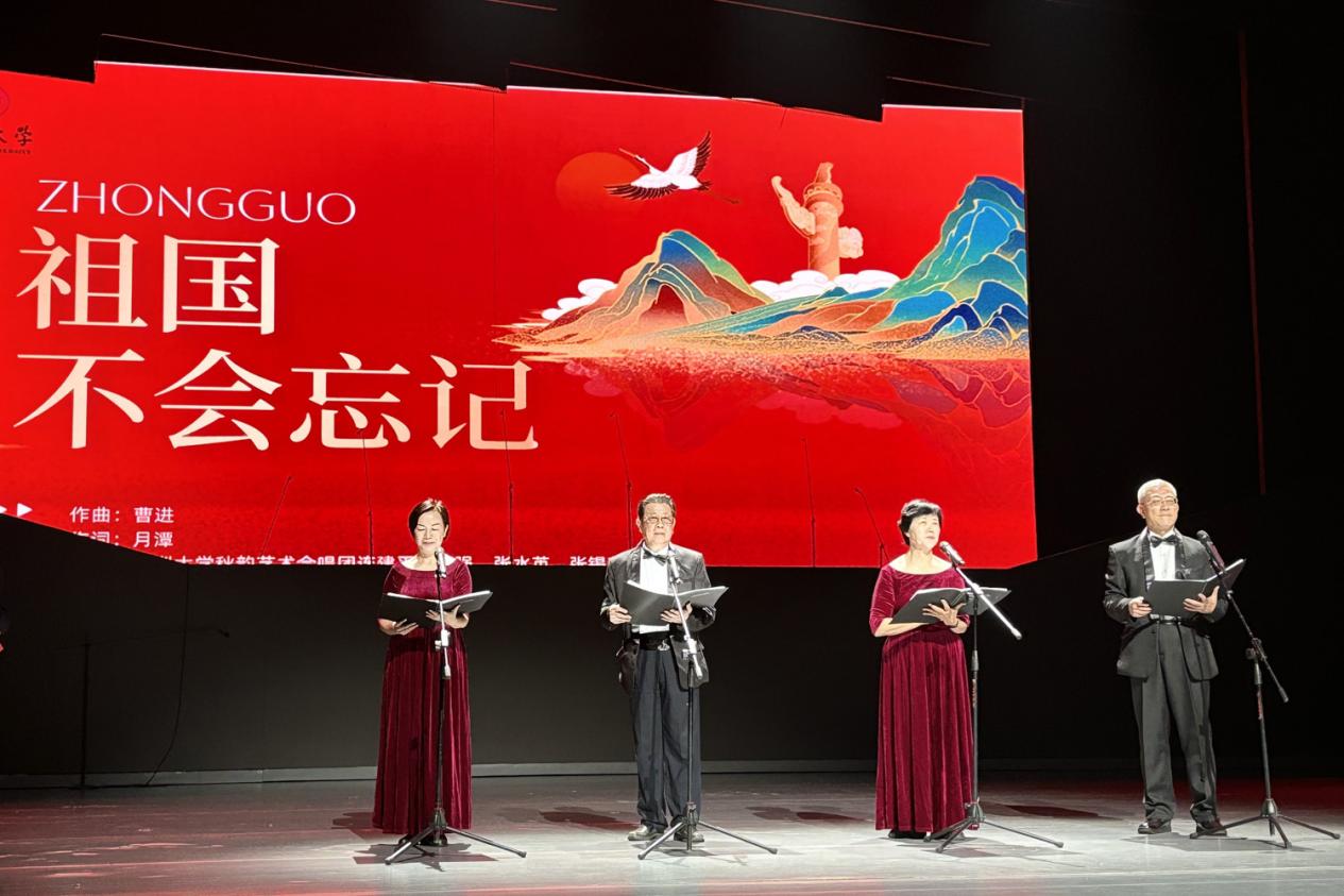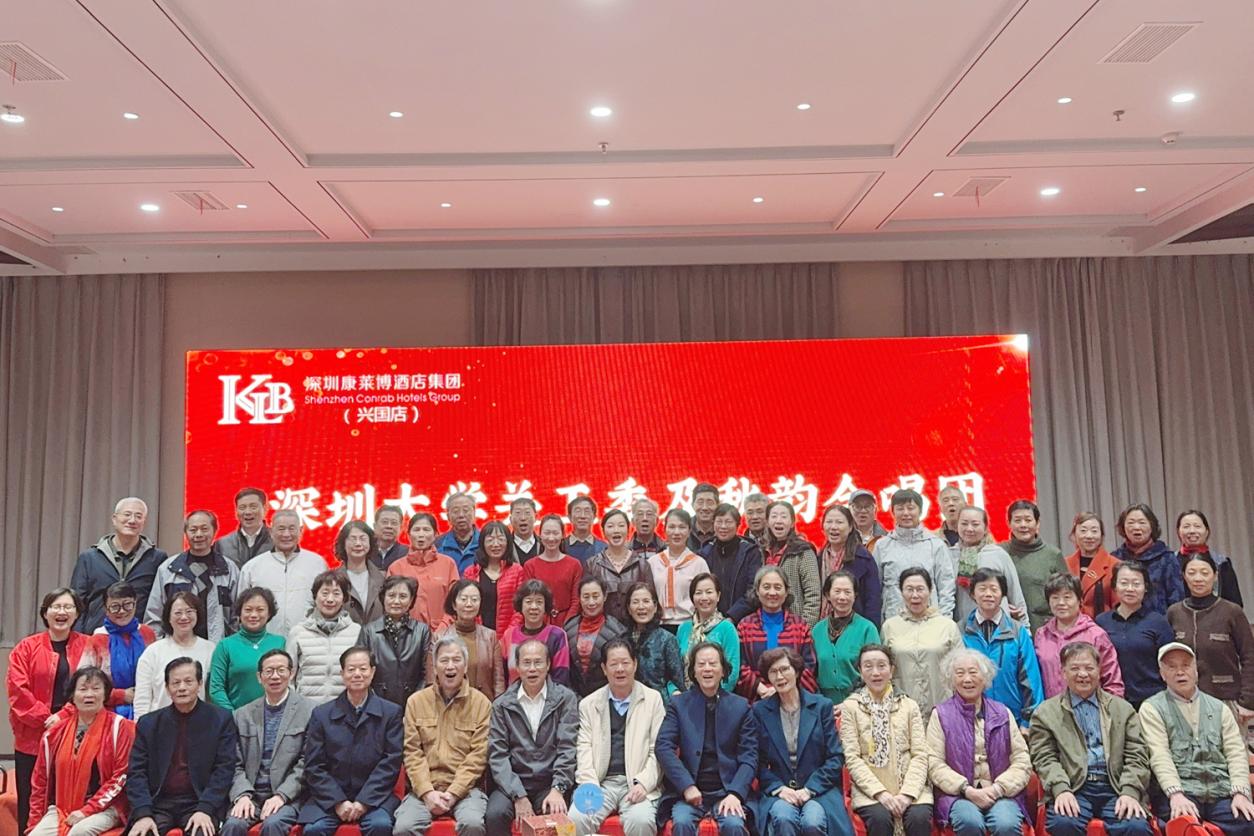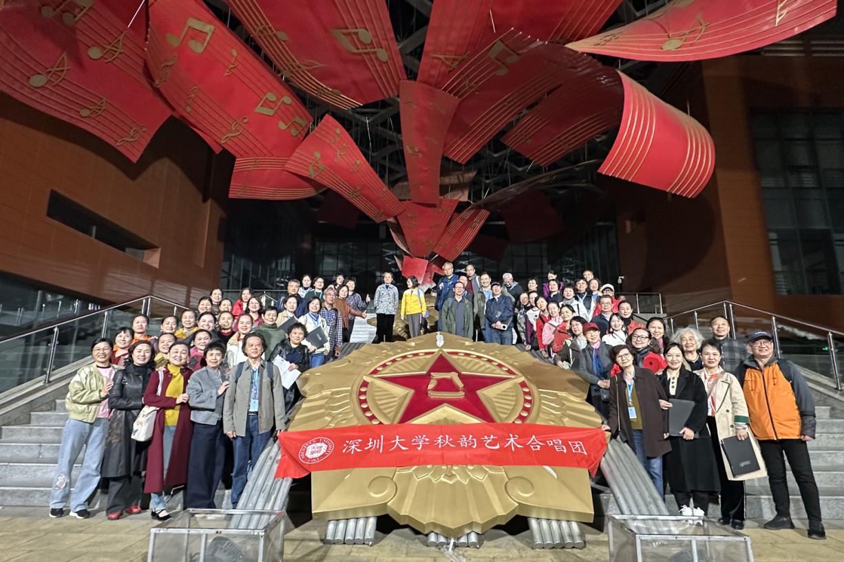 秋韵艺术团压轴的大合唱《深大人之歌》《我是兴国好儿郎》和《春风十万里》。
