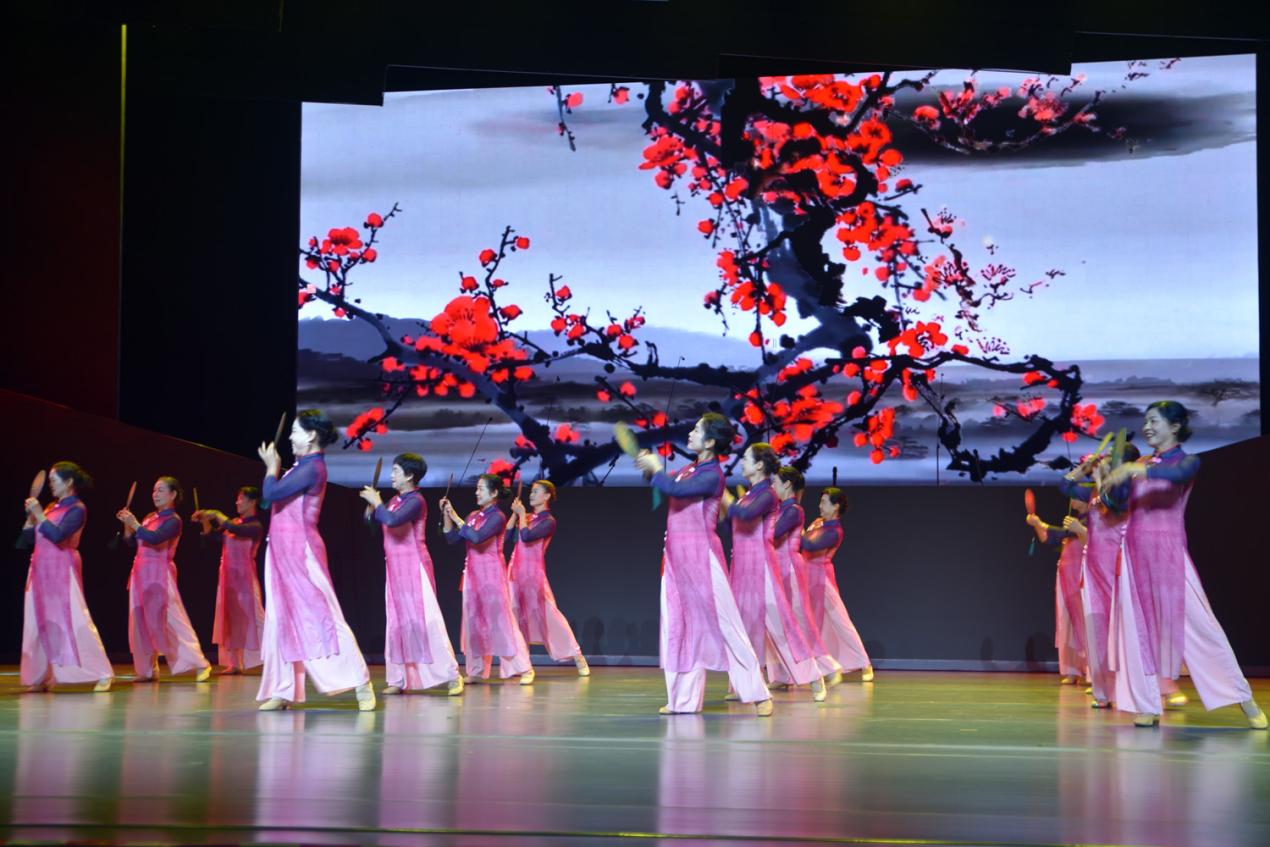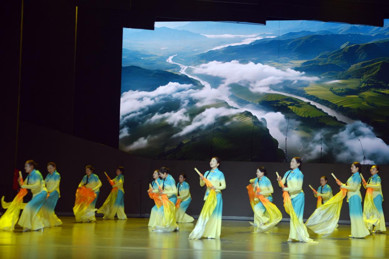 兴国县老年大学艺术团演出舞蹈《黄河水从我家门前过》。