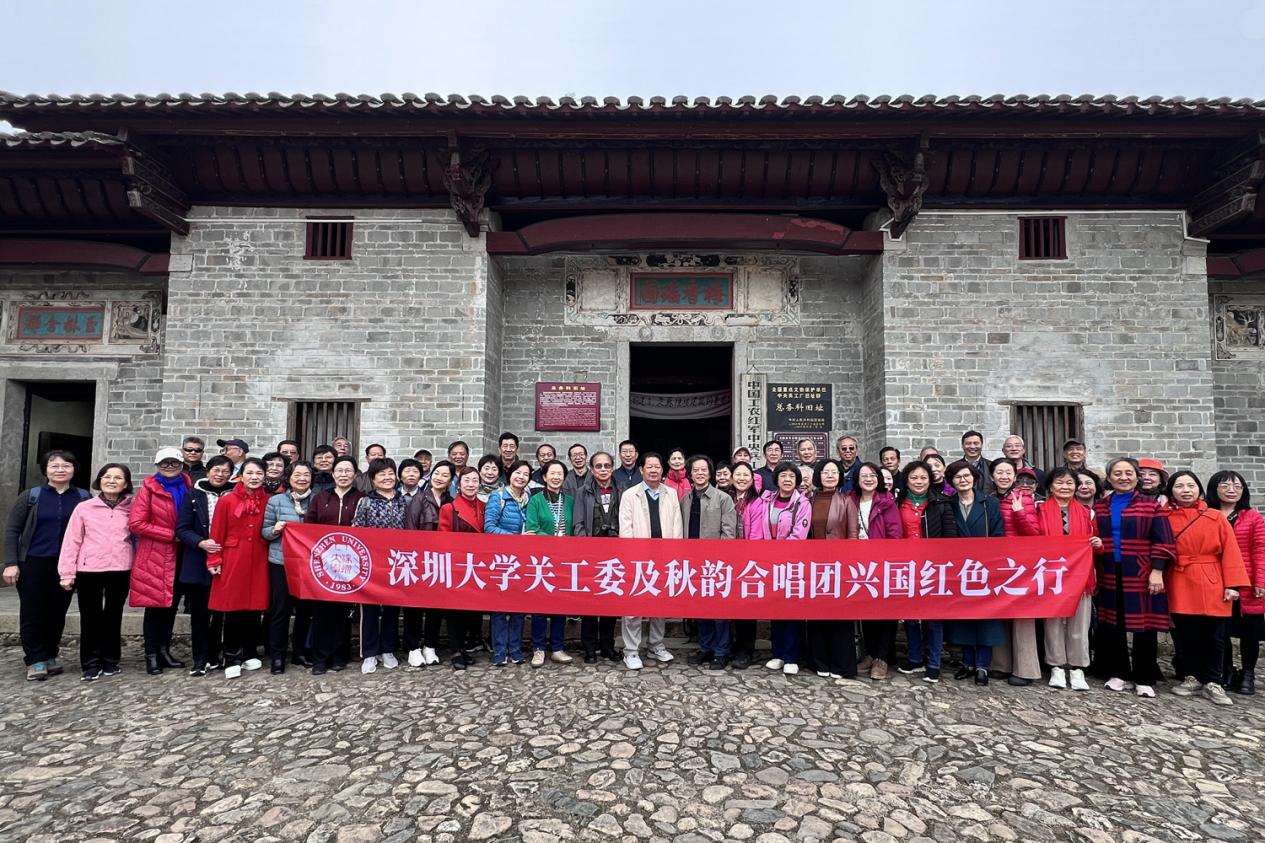 策划已久的红色兴国之行,在校党委副书记吴报水同志和离退休工作办公室的关心和大力支持下,于12月4日成行。这次活动由深圳大学关工委副主任梁桂麟同志带队,深大关工委和秋韵艺术团联袂前往江西省兴国县,访问兴国县关工委,参观红色纪念地,并且与兴国老年大学及兴国官田小学联欢。