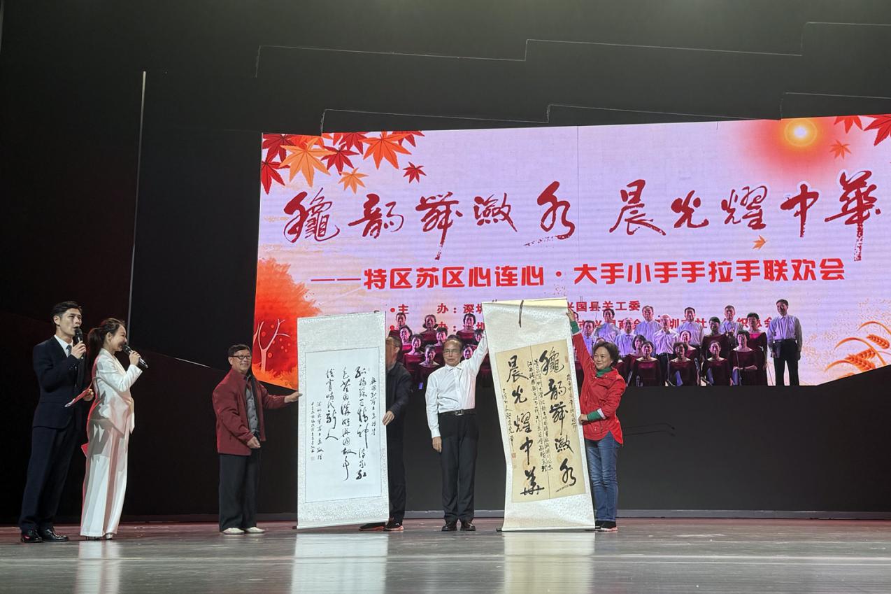 演出结束后,深圳大学关工委和兴国县关工委互赠书法条幅。