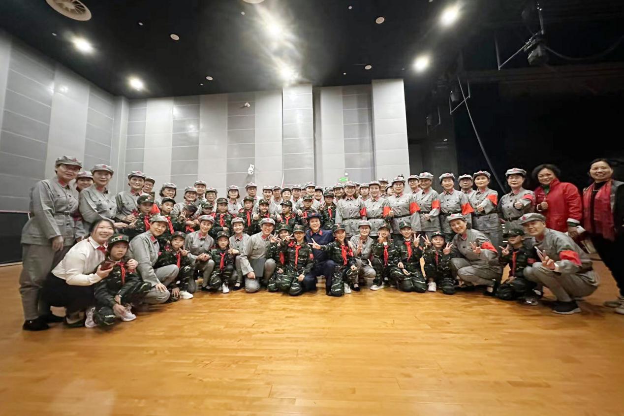 特区苏区心连心,大手小手手拉手。官田小学的小演员和深圳大学的老教师在后台热烈互动,拍照留念。