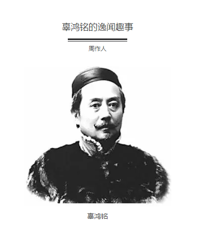 辜鸿铭早年留学英国,在那有名的苏格兰大学毕业,归国后有一时也是断发西装革履,出入于湖广总督衙门(依据传说如此,真伪待考),可是后来却不晓得什么缘故变成那一副怪相,满口“春秋大义”,成了十足的保皇派了。但是他似乎只是广泛的主张要皇帝,与实际运动无关,所以洪宪帝制与宣统复辟两回事件里都没有他的关系。他在北大教的是拉丁文等功课,不能发挥他的正统思想,他就随时随地想要找机会发泄。我只在会议席上遇到他两次,每次总是如此。有一次是北大开文科教授会讨论功课,各人纷纷发言,蔡校长也站起来预备说话,辜鸿铭一眼看见,首先大声说道:“现在请大家听校长的吩咐!”这是他原来的语气,他的精神也就充分的表现在里边了。又有一次是“五四”运动时,“六三事件”以后,大概是1919年的6月5日左右吧,北大教授在红楼第二层临街的一间教室里开临时会议,除应付事件外,有一件是挽留蔡校长。各人照例说了好些话,反正对于挽留是没有什么异议的。问题只是怎么办,打电报呢,还是派代表南下。辜鸿铭也走上讲台,赞成挽留校长,却有他自己的特别理由,他说道:“校长是我们学校的皇帝,所以非得挽留不可。”《新青年》的反帝反封建的朋友们有好些都在座,但是因为他是赞成挽留蔡校长的,所以也没有人再来和他抬杠。