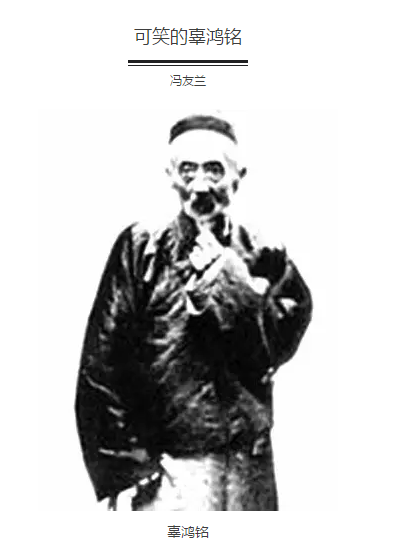 1915年9月初,我到北京大学参加开学典礼。胡仁源主持会场,他作了一个简短的开幕词以后,英文门教授辜鸿铭(汤生)从主席台上站起来发言。我不知道这是预先安排好的,还是出于辜本人的临时冲动。他的发言很长,感情也很激动,主要的是骂当时的政府和一些社会上的新事物,大意是说,现在做官的人,都是为了保持他们的饭碗,他们的饭碗跟咱们的饭碗不同,他们的饭碗大得很,里边可以装汽车、姨太太。又说,现在人作文章都不通,所用的名词就不通,譬如说“改良”吧,以前的人都说“从良”,没有说“改良”的,既然已经是“良”了,你还改什么?你要改“良”为“娼”吗?他大概讲了一个钟头,都是这一类的漫骂之辞。他讲了以后,也没有别人发言,就散会了。当时民国已经成立四年了,辜鸿铭还拖着辫子来讲课。我没有去旁听过他的课,只听到英文门的同学说,他在讲堂上有时候也乱发议沦,拥护君主制度,有一次竟说,现在社会大乱,主要的原因是没有君主。又曾说,比如说法律吧,你要说“法律”(说的时候小声),没有人害怕;你要说王法”(大声,拍桌子),大家就害怕了,少了那个“王”字就不行,总之,凡是封建的东西他认为都是好的。