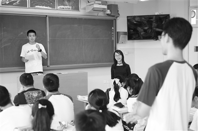 北京四中博士教师任余洁在上化学课。 视觉中国供图