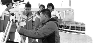 | 广州市执信中学天文学社团学生在老师指导下调试望远镜。学校供图 |