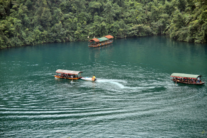 游过宝鼎园,我们到了在宝鼎园下的“蝴蝶谷”。蝴蝶谷的主要景区,是建在湖心一个小岛的蝴蝶园,此外还有一条探险旅游线,据说能观赏到黑桫椤等国家一级珍稀植物及自然林景色,有七、八个瀑布,游程约一个多小时。游蝴蝶谷需要购票,通过游船将游客送到小岛。我们等船等了半个小时左右。到小岛后,这是看了看蝴蝶园,扰小岛走了走,就乘船返回了。