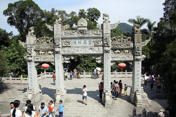 1971年,我们一批知青从上山下乡的连山县上草农林垦殖场整体搬迁到位于珠江支流北江、绥江交汇处的四会大旺农场。四会是当年肇庆地区管辖的一个县,现在是肇庆市的一个县。我们在肇庆一直生活到1986年,直到我们调到广州工作。其中,1978年我到肇庆师专读书,当年学校在新兴县高村,隔年搬到肇庆市;1981年留校工作,1983年家搬到肇庆师专。掐指算来,我在肇庆市住了7年。星湖、鼎湖是我熟悉的地方。当年留校后,就还在大旺农场,我基本是一个月回家一次,50多公里的路程,交通工具是自行车。那时候走的是省道,路上的汽车也没有多少。现在已经大不同,高速公路四通八达,大旺农场也已经变成肇庆高新技术开发区。大约3个小时后,我们来到鼎湖山景区入口处。