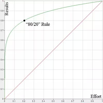 下面这张图是2/8原则的另一种表现形式(横轴为努力,纵轴为效果):